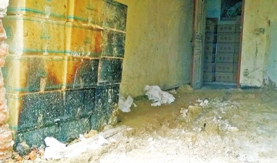 昨日15時(shí)35分,位于鄭州市107輔道以北的該處八堡村民房內(nèi),至少兩個(gè)房間碼放的方形紙箱堆積有兩米多高,遠(yuǎn)遠(yuǎn)就能嗅到刺鼻氣味。紙箱外包裝及紙箱內(nèi)的液體塑料包裝瓶體,均無物品名稱、生產(chǎn)廠家等標(biāo)識(shí)。房間內(nèi)墻體上的一張貼畫有一半被燒掉發(fā)黑,地面有白色的粉末狀不明物質(zhì)和摻雜的黃土。