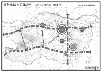 鄭州市城市總體規(guī)劃(2010—2020年)(2017年修訂)市域城鎮(zhèn)體系規(guī)劃圖 圖片來自鄭州市政府官方網站